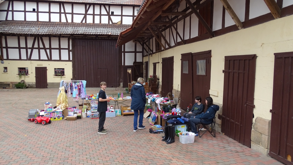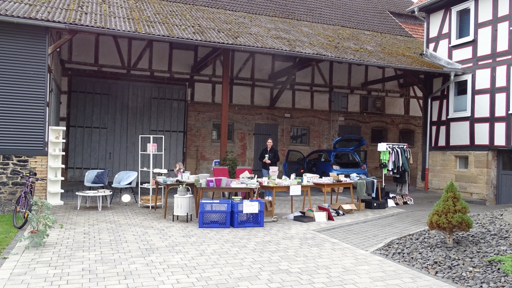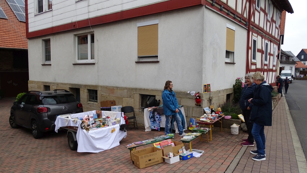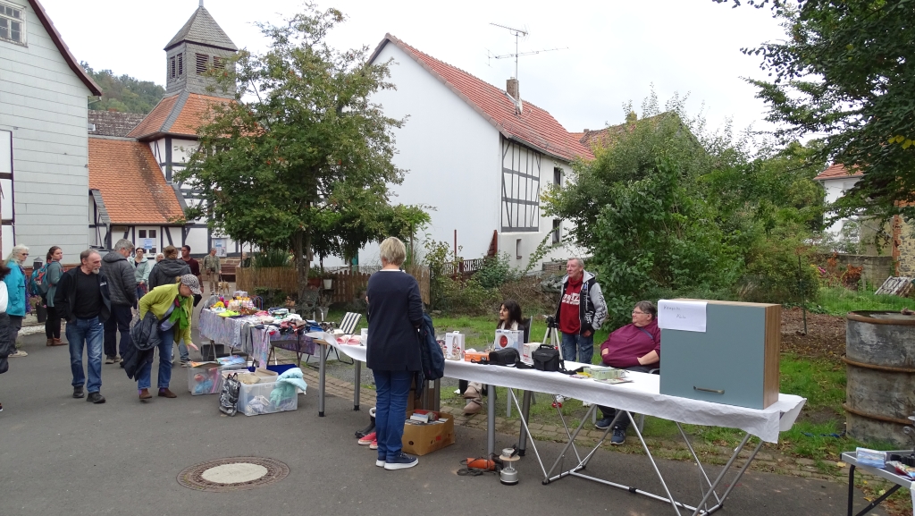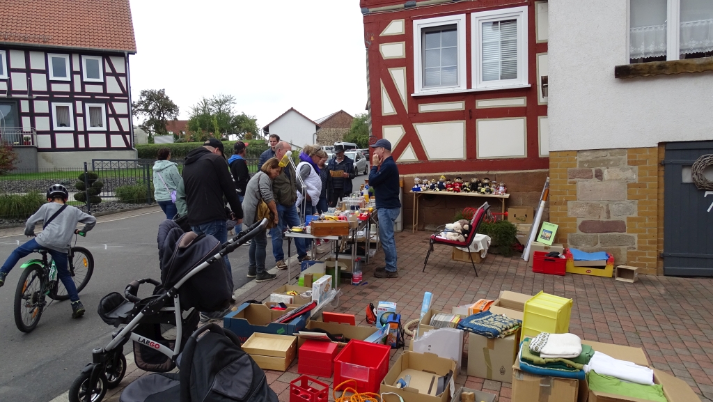 Altertümliches, Haushaltswaren, Kleidung sowie Spielwaren, Bücher und vieles mehr wurden angeboten. Am Multifunktionsgebäude konnten sich die Besucher über die Standorte der Flohmarktstände informieren und sich stärken. Leckere Speisen wie Bratwurst, Currywurst, Pommes, Schwälmer Klöße mit Speckfett, Todenhäuser Platz, hausgemachte Kuchen, Waffeln und Kaffee sowie gekühlte Getränke wurden angeboten.