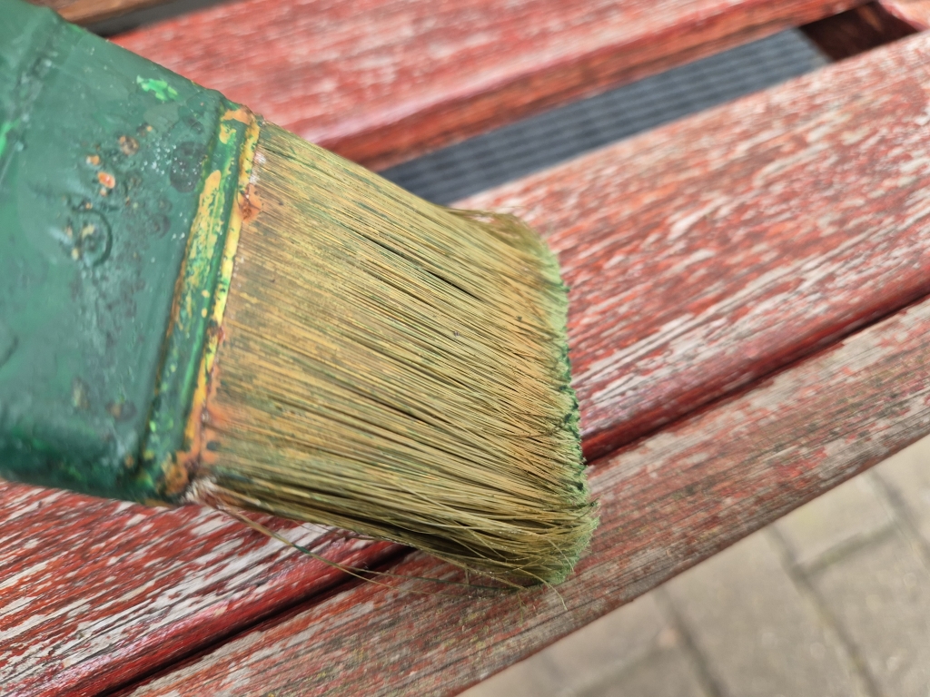 Holzbretter abschrauben, abschleifen, streichen und wieder anschrauben. Wir treffen uns am