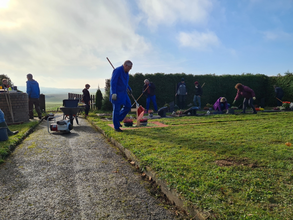Am Samstag, den 23. Oktober hatten die Friedhofskommission und der Ortsbeirat zur Herbstpflege am Friedhof aufgerufen. Viele fleißige Helferinnen und Helfer waren der Einladung gefolgt.